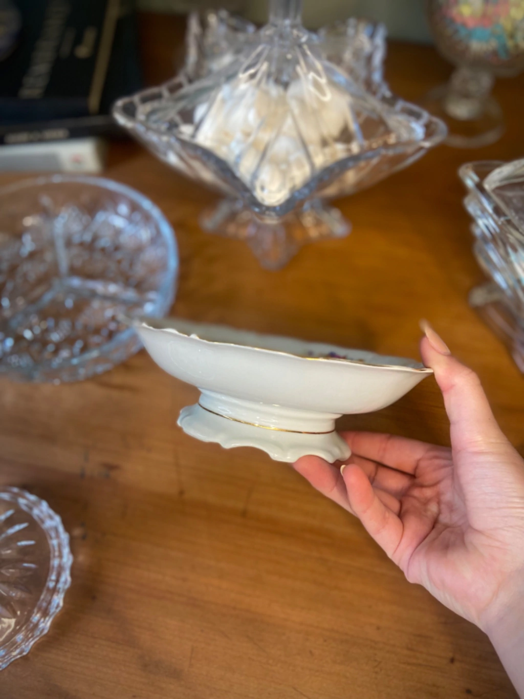 Confecionada em porcelana polonesa manufatura Wawel.Decorada com lindos buquês,filetes à ouro,detalhes em relevo em volutas e bordas onduladas .