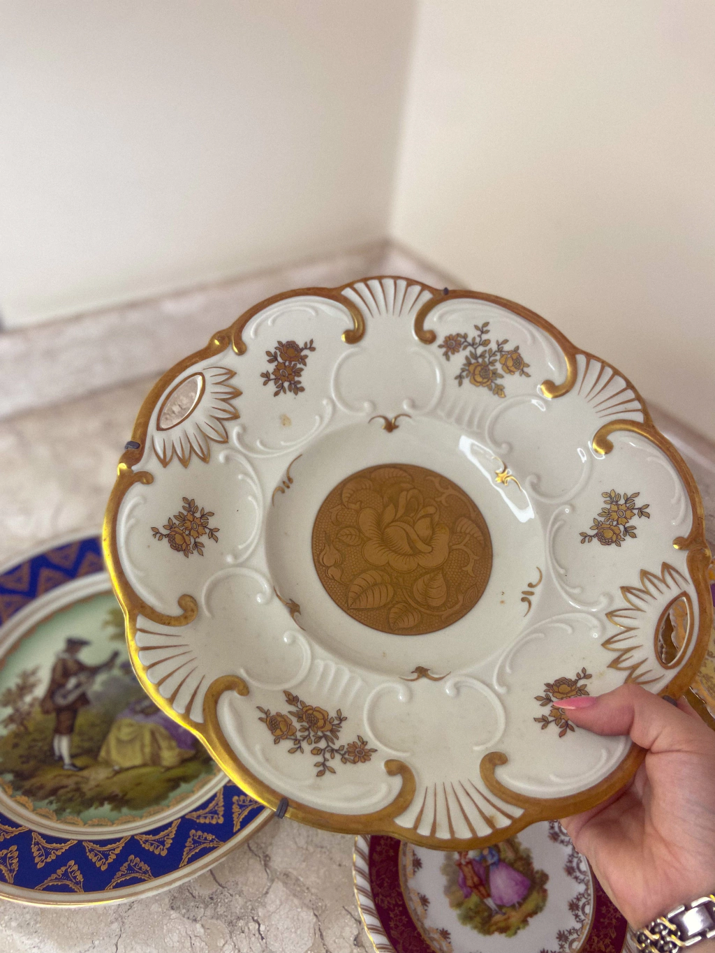 Magnífico centro de mesa em porcelana alemã,Bavária.Decorado com flores e realces em dourado