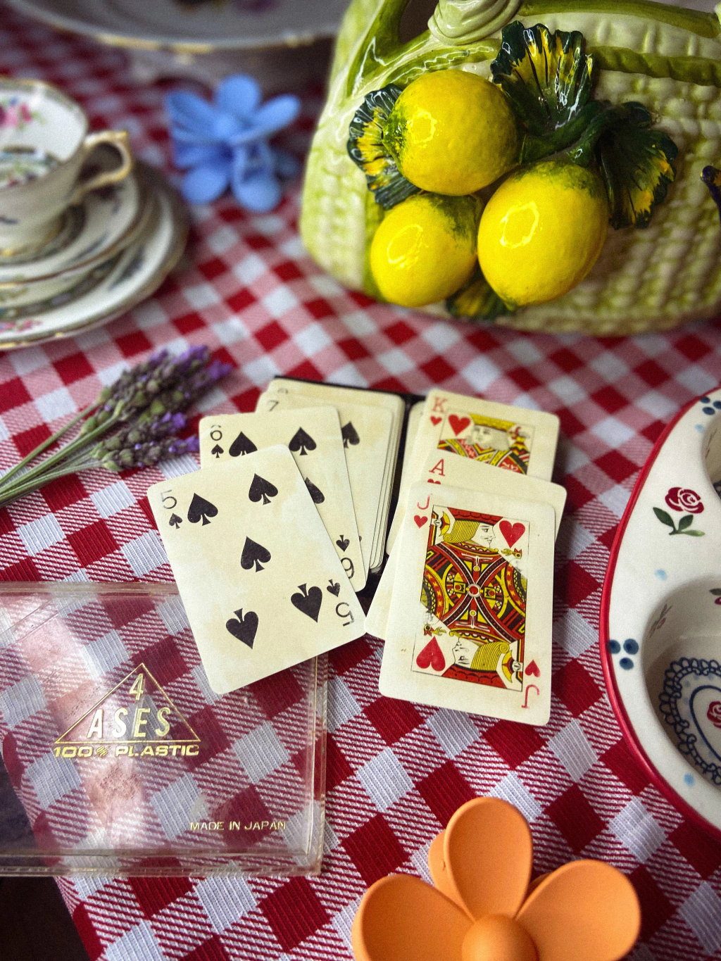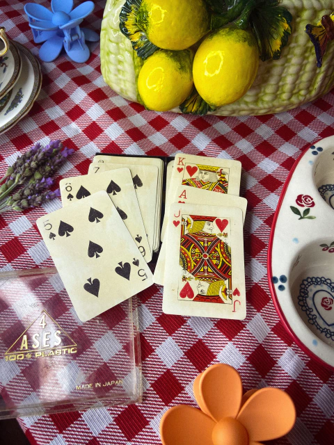 Antigo jogo de baralho japonês acompanha estojo