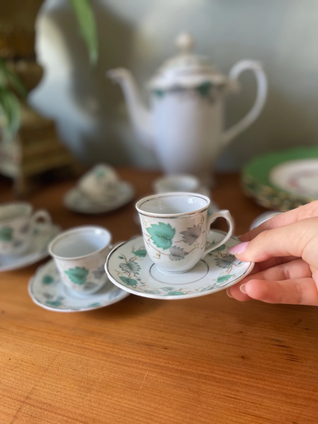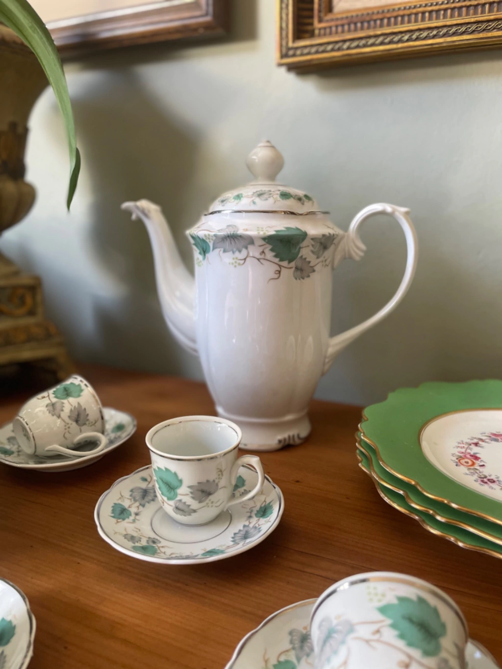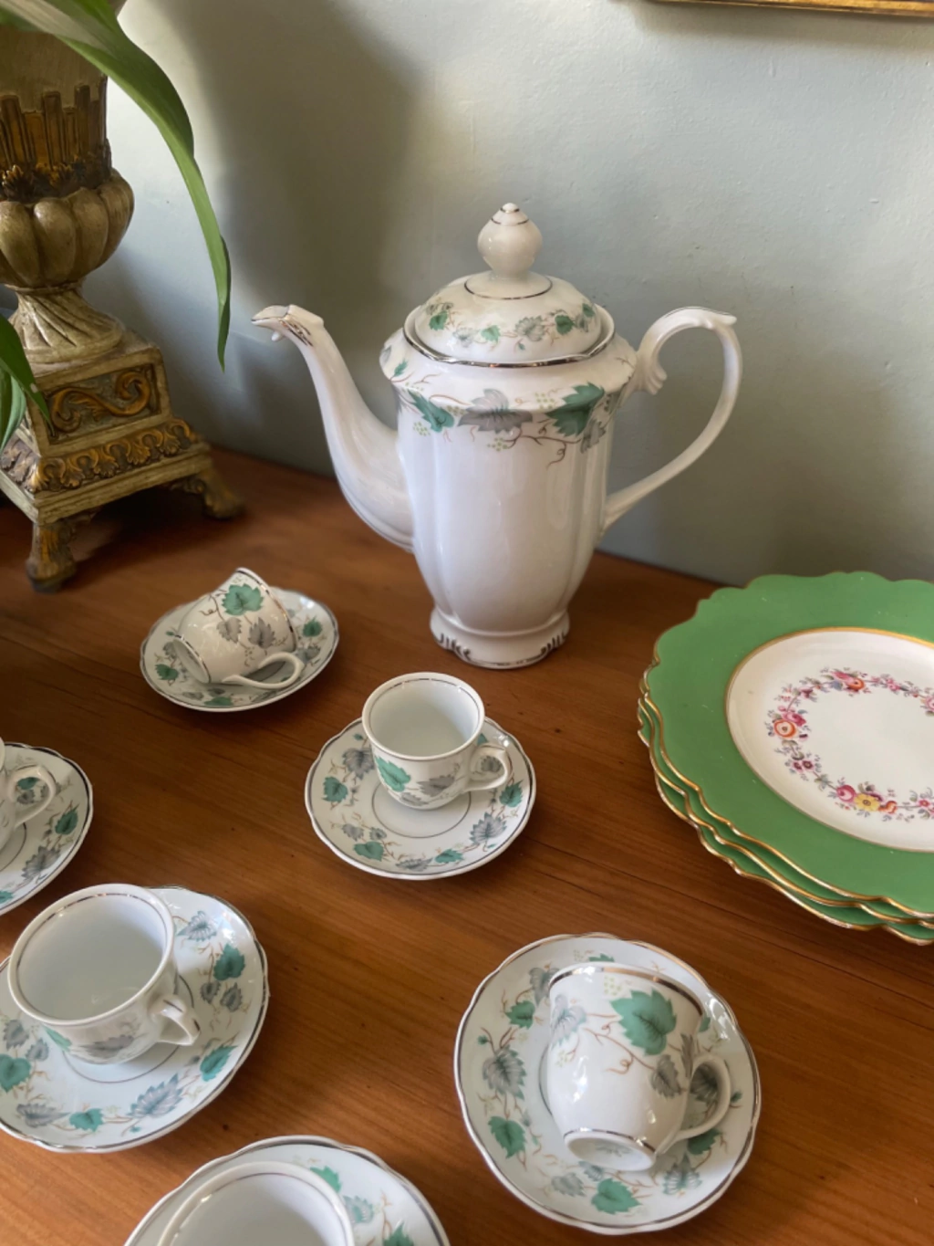 Peças com decoração em tom verde e filete à prata