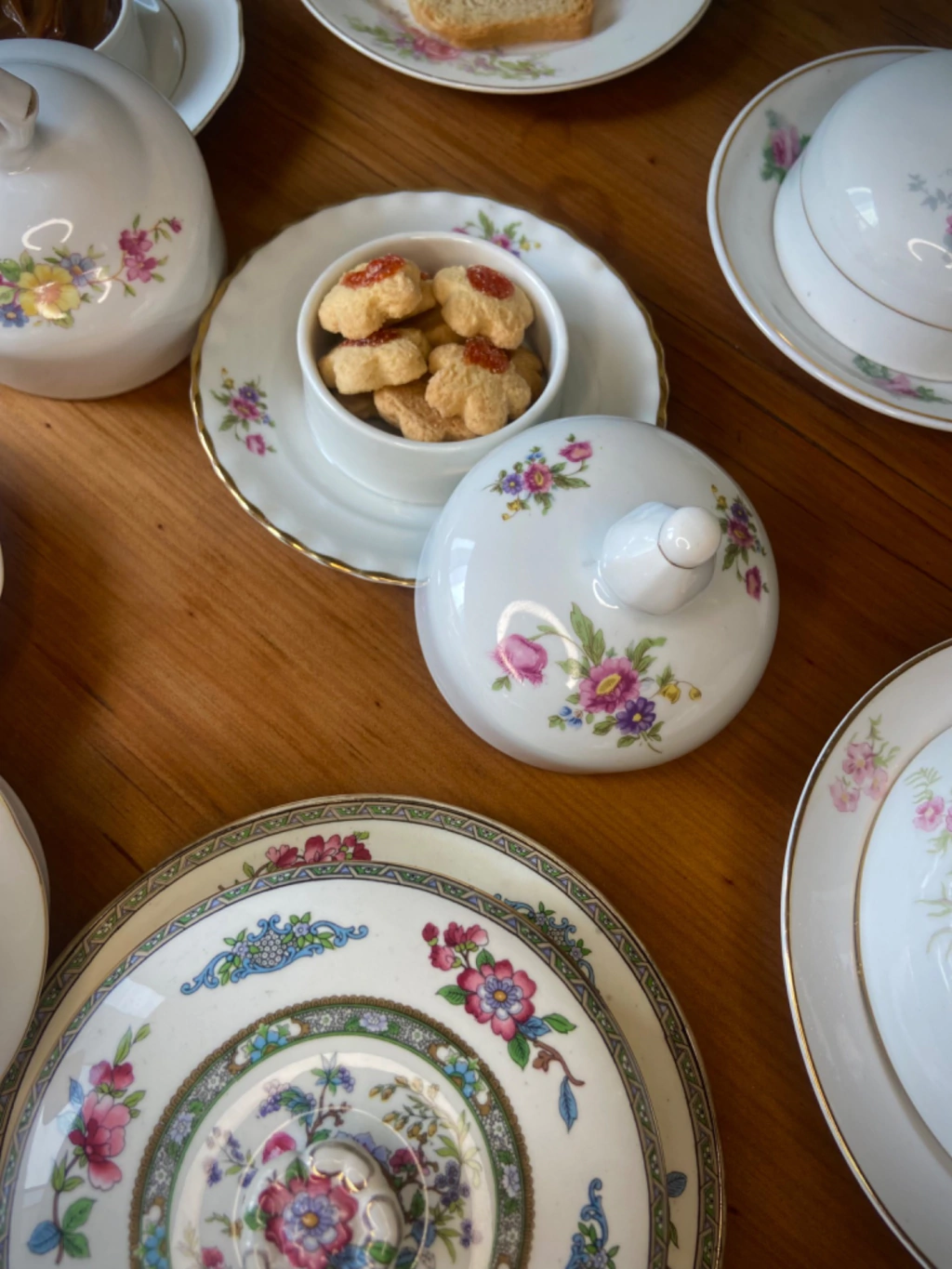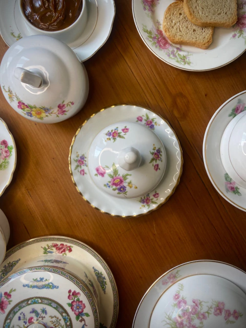 Manteigueira em porcelana com charmosas bordas trabalhadas e com filetes à ouro