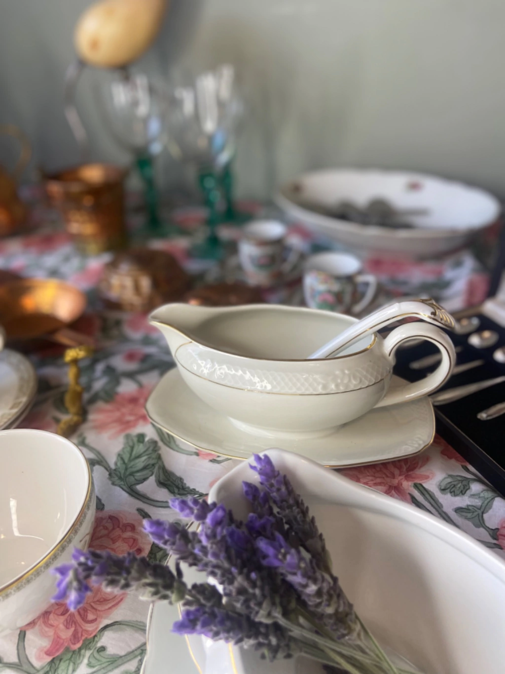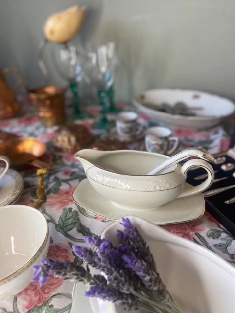 Elegante e clássica molheira em porcelana Bavaria,acompanhando antiga concha para molho também em porcelana