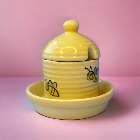 Porta mel em faiança,com sousplat acoplado