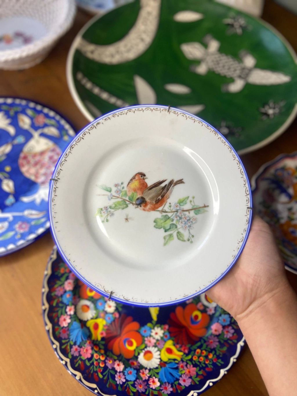 Belíssimo e delicado prato decorativo porcelana Checoslováquia,manufatura Tkum