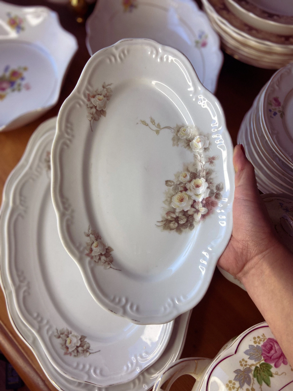 Travessa Serena com decoração de rosas e detalhes em relevo